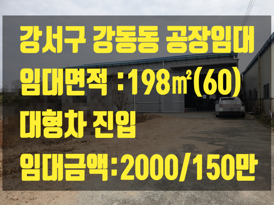 오늘은 부산 강서구 강동동 대형차 진입 가능한 공장,창고임대 198㎡(60)를 소개하겠습니다.